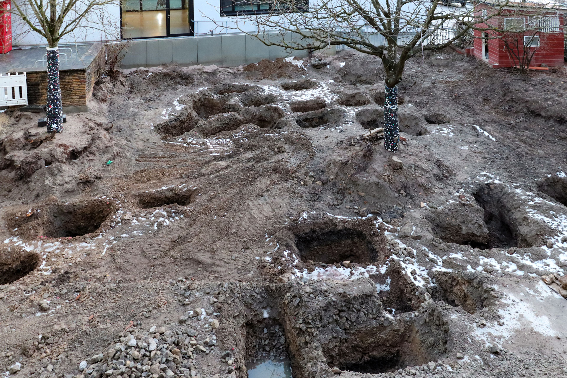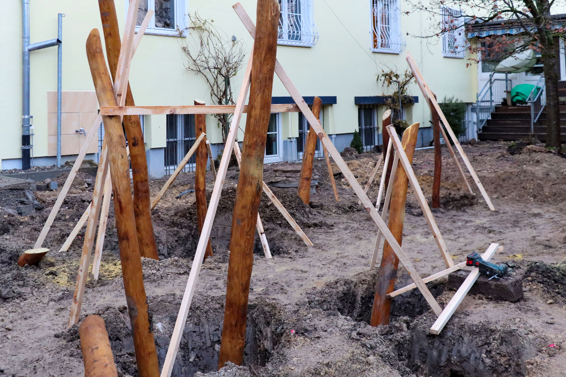 Die Bauarbeiten zur Neugestaltung unserer Gärten haben begonnen.